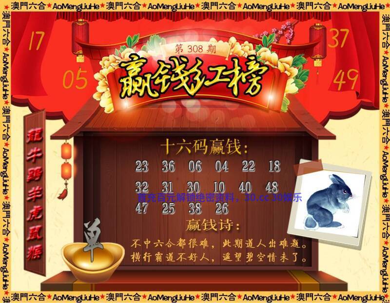 | 308期:三头中特【1-2-3头】开:兔39准 |